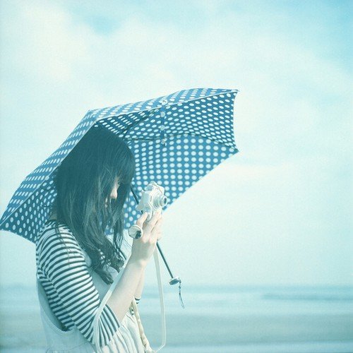 在來看看底下這張拿著雨傘拍照的女孩