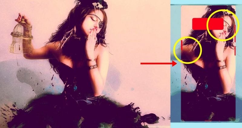 像是底下美麗的女神左手拿著鳥籠的圖面,看起來相當完美,但是由於NOTE8的機身是長方形的,加上相機鏡頭大大的正上方,